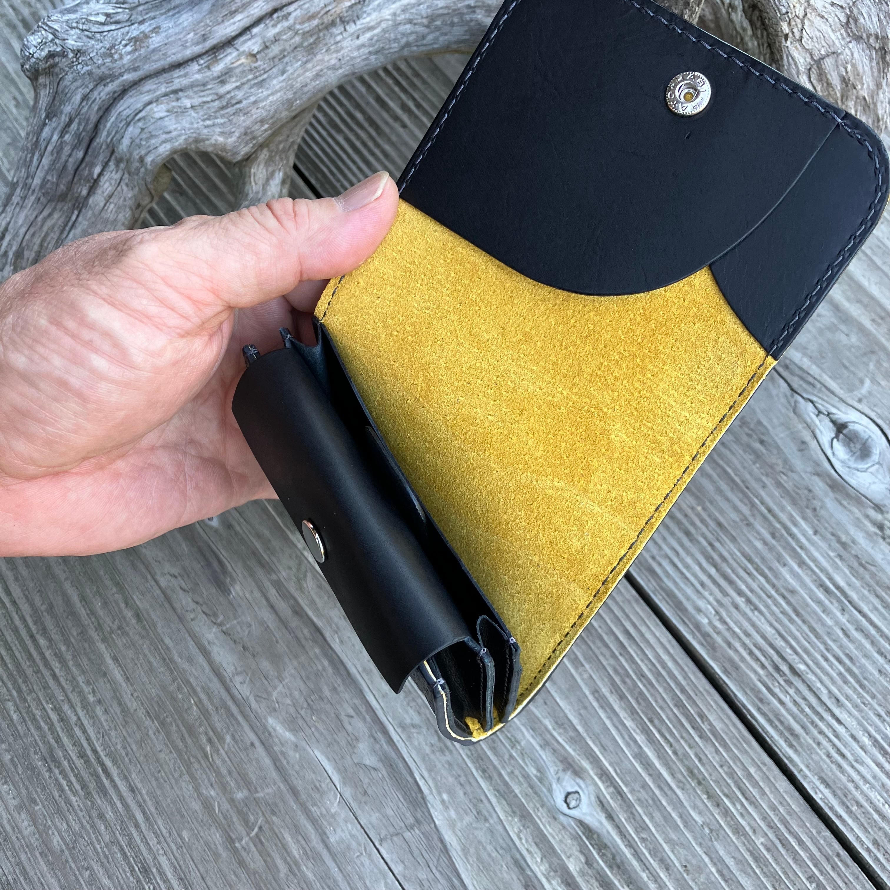 鹿革を使用して製作した、コンパクトながら抜群の収納力を誇るミニ財布。手のひらに収まるサイズ感ながら、お札は約10枚、小銭は約20枚、さらにカードを10枚程度収納でき、普段使いには十分な容量を実現しています。小さなバッグやポケットにもすっきり収まり、持ち運びやすさも魅力です。