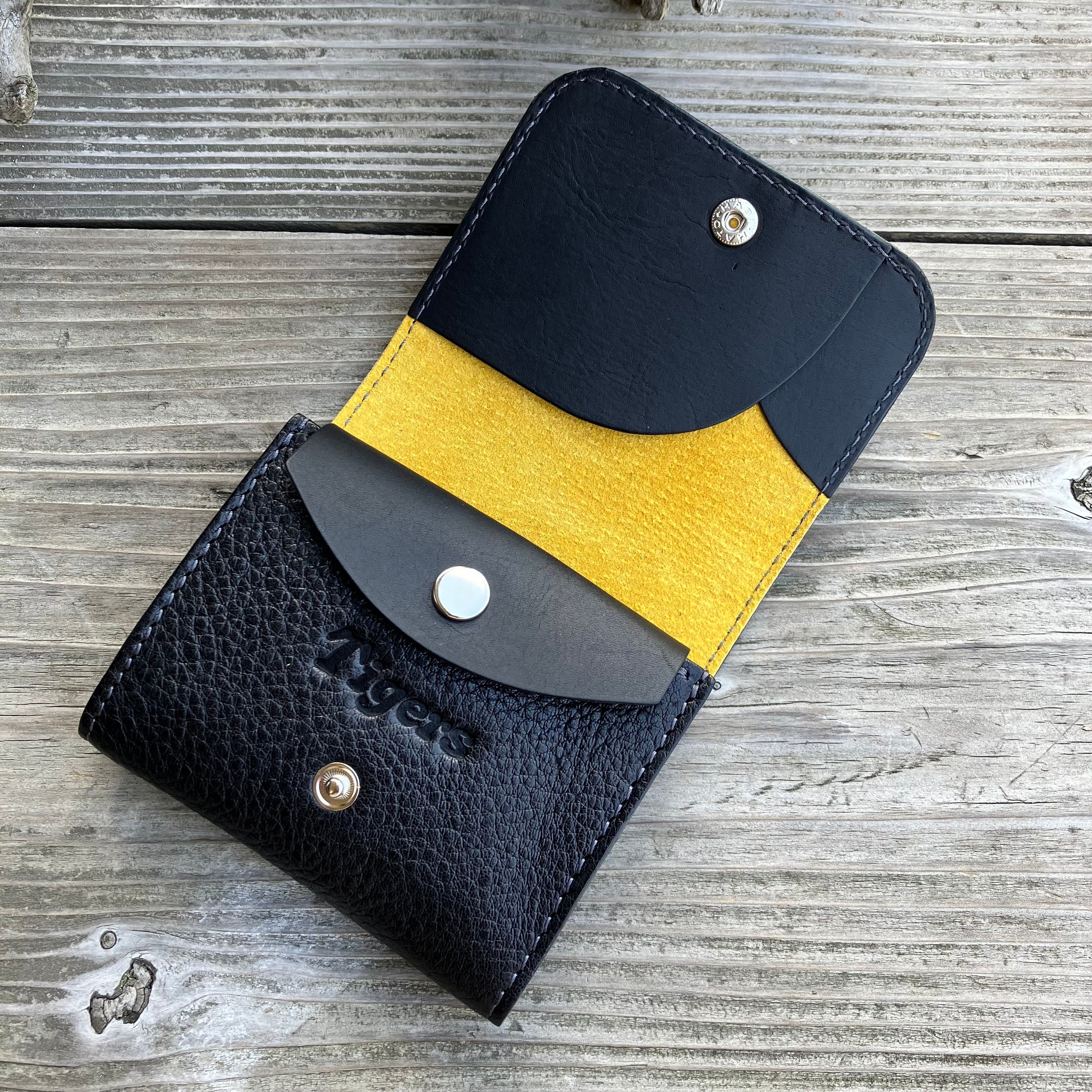 【阪神タイガース×ベルズスクエア】兵庫ジビエレザー☆丹波炭黒の鹿革ミニウォレット カードが飛び出し取り出しやすい!