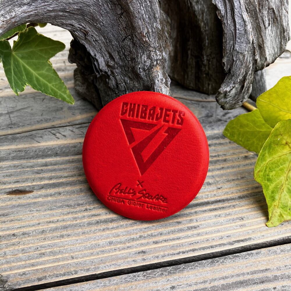 【千葉ジェッツ×ベルズスクエア】コラボ キョン革の缶バッチ 千葉ジビエレザープロジェクト